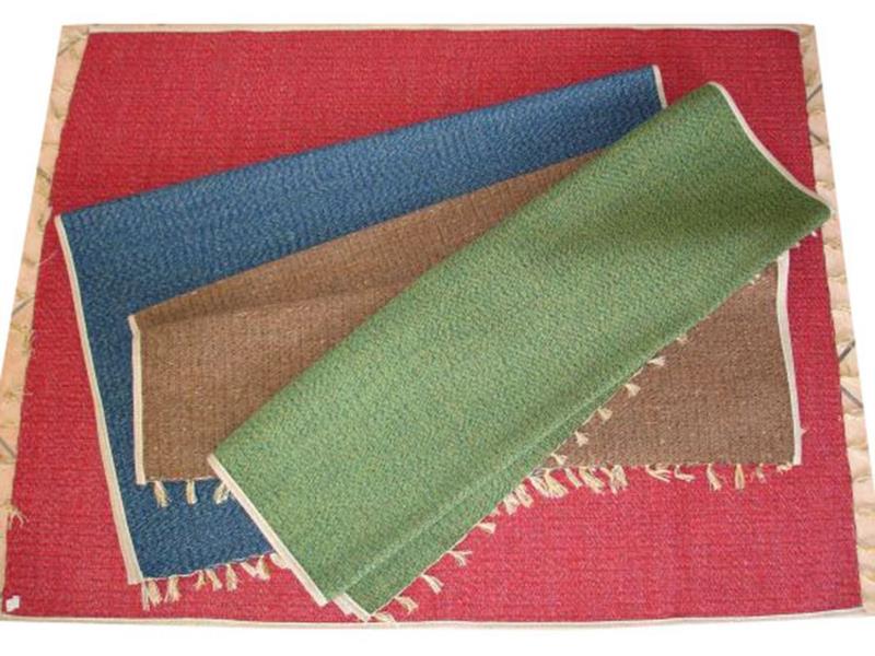 Caratteristiche: disponibile in 4 colori tappeti colorati: sono costituiti da filati naturali ritorti e tessuti , doppia faccia , si usa entrambi i lati con alternanza di colore, aderisce al pavimento, dura parecchi anni, lavabile in lavatrice con centrifuga a freddo. Disponibili nei colori: blu - verde – rosso – marrone.