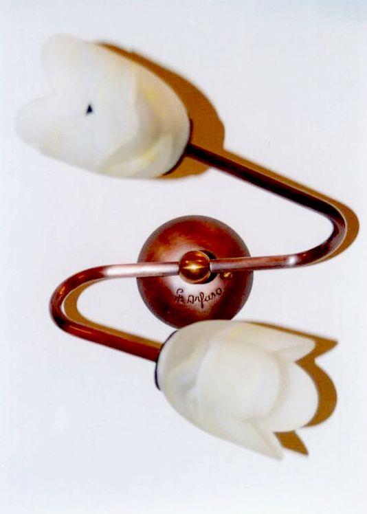 Applique a braccio a 2 luce con  curve, si può montare direzionando la luce dove si vuole, a 360°. Il rame viene lavorato interamente a mano, non si ossida quindi rimane inalterata nel tempo. Ogni opera viene firmata dal maestro.