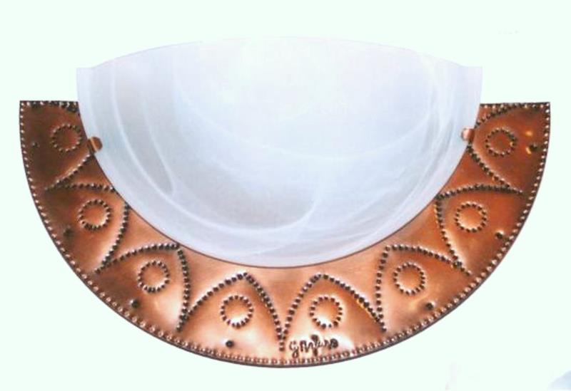 Applique a muro in rame mezza luna con motivo a triangolo e vetro satinato, il tutto si sviluppa con armonia ed eleganza. Ogni manufatto viene lavorato interamente a mano, il rame non si ossida rimane inalterato nel tempo, tutti i pezzi sono unici e vengono firmati dall'artista.