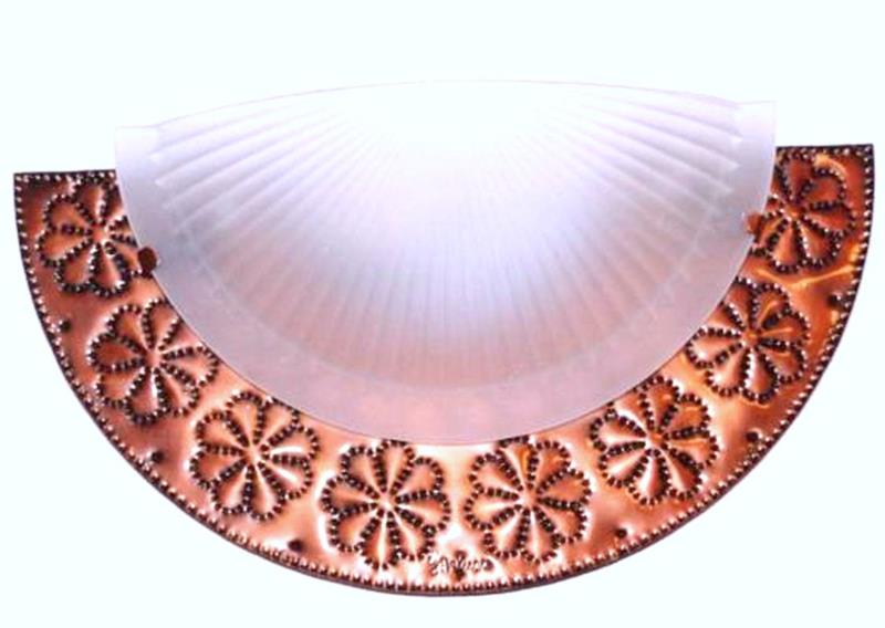 Applique a muro in rame mezza luna puntinata con motivi margherite e vetro satinato, il tutto si sviluppa con armonia ed eleganza. Ogni manufatto viene lavorato interamente a mano, il rame non si ossida rimane inalterato nel tempo, tutti i pezzi sono unici e vengono firmati dall'artista.