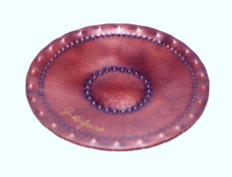Piattino da appendere o appoggio in rame, semplice, puntinato, sbalzato e imbrunito, reso opaco, mentre per tutta la circonferenza è puntinato seguendo un certo ordine, motivo decorativo della Magna Grecia. Il manufatto è armonioso e semplice.Ogni pezzo viene lavorato interamente a mano, il rame non si ossida rimane inalterato nel tempo, tutti i pezzi sono unici e firmati dal maestro. Completo di forellino per appendere. Può essere usato anche come svuota tasche o contenere cioccolatini ecc..