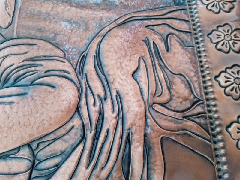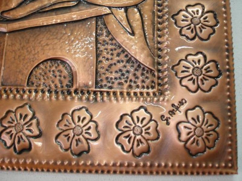 Il rame non si ossida rimane inalterato nel tempo, Completo di predisposizione per appenderlo. Si possono richiedere quadri su ordinazione o opere particolari inviando un soggetto: personaggi, immagini floreali o animali, con relative misure..