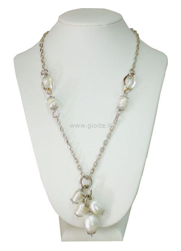Collana in perle di fiume composta da otto perle, con catena in silver lunga cm 51,5