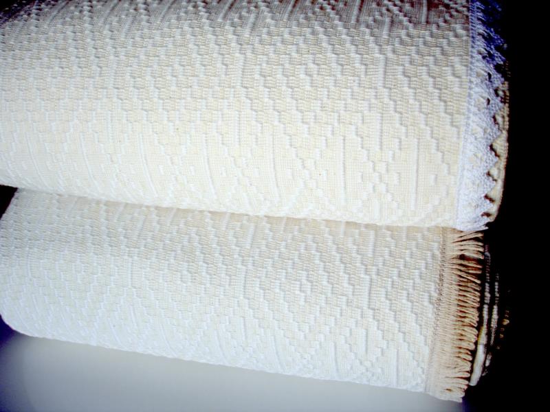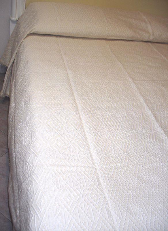 Copriletto singolo in purissimo cotone colore avorio naturale anallergico disegno tradizione Calabrese di Seminara produzione Gioite tessuto fatto a mano con frangia egrù disegno in tre D a rilievo IT
