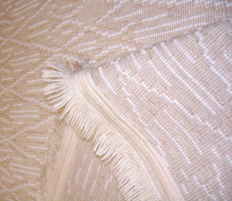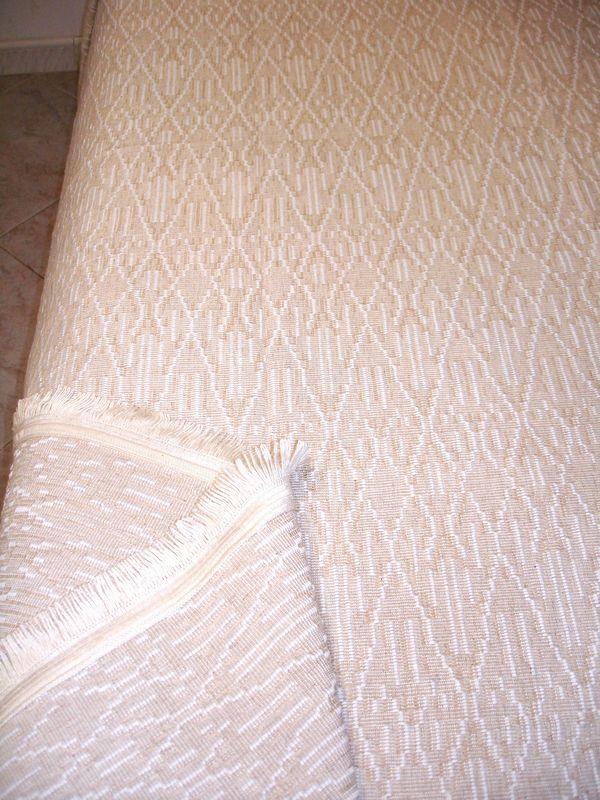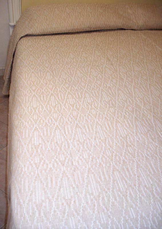 Copriletto singolo in lino e cotone tessuto naturale anallergico con disegno a rombi incastrati artigianato Italiano Calabrese di Seminara produzione Gioite fatto a mano lavabile in lavatrice resisten
