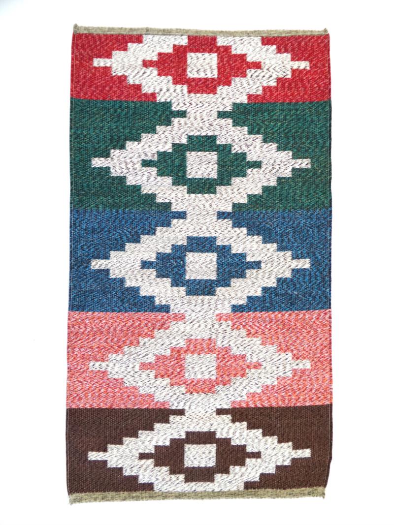 Tappetini multicolore in cotone,sono costituiti da filati naturali ritorti e tessuti , doppia faccia , si usano entrambi i lati con alternanza di colore, aderiscono al pavimento, durano parecchi anni, lavabili in lavatrice con centrifuga a freddo.Tutti i colori sono assortiti quindi ogni manufatto è unico. Sono disponibili nelle tonalità del blu, rosso, verde, marrone, nero. Pezzi unici