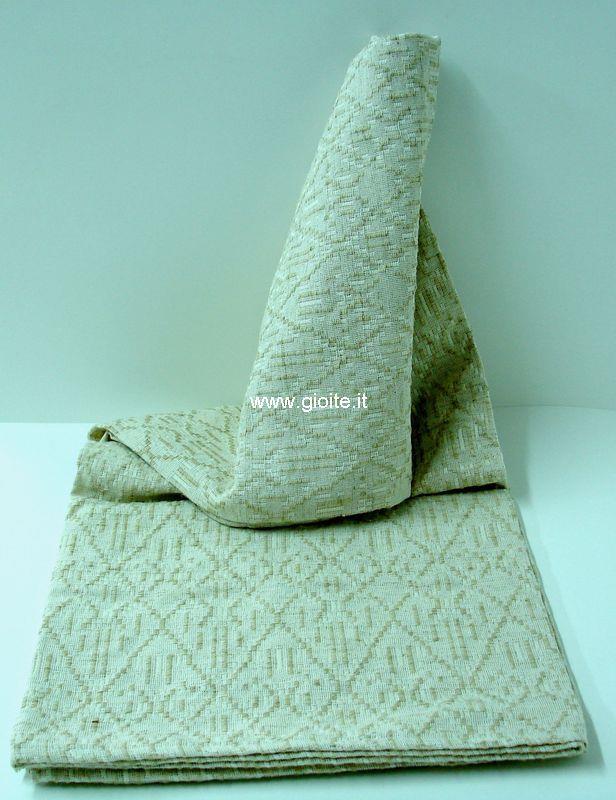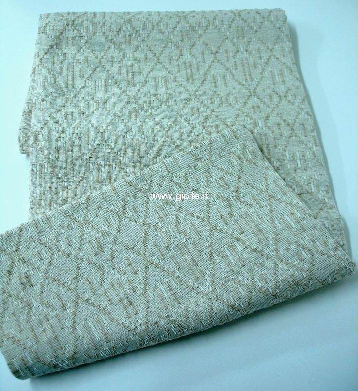 Copri tavolo in lino, motivo detto mattonella per il suo intreccio particolare. Il tessuto è in trama lino e l'ordito di colore naturale, attraverso questo procedimento di intreccio si rende più visibile il motivo decorativo. E' un tessuto morbido resistente, si lava in lavatrice a 60° se si desidera mantenere il colore naturale, altrimenti si può lavare anche a temperature alte, schiarisce soltanto.