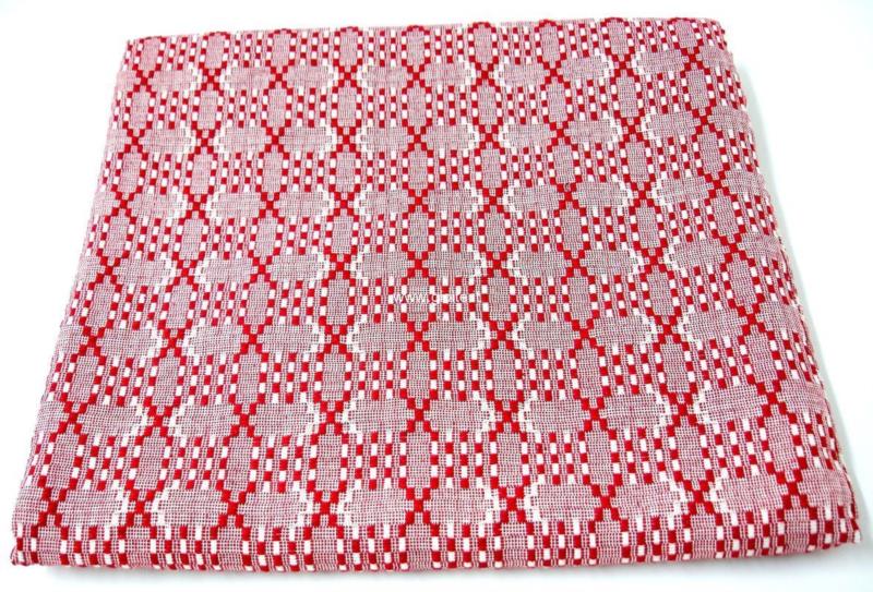 Tovaglia da tavolo in cotone rosso, motivo detto mattonella per il suo intreccio particolare. Il tessuto è in trama cotone di colore rosso e l'ordito di colore naturale del cotone, attraverso questo procedimento si rende più visibile  il motivo decorativo. Abbiamo realizzato tutte le misure per ogni esigenza di tavolo. E' un tessuto morbido resistente, si lava in lavatrice a 60°.