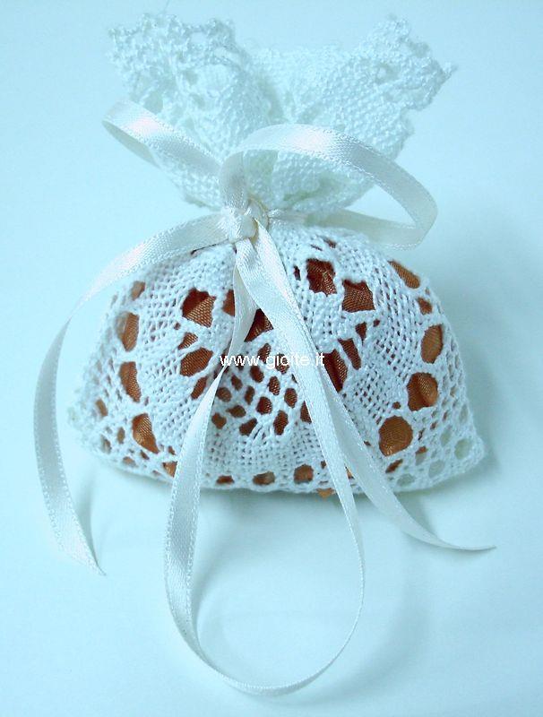 Sacchetti profumati alla lavanda in pizzo, trasparenza colorata e nastro in raso. Per profumare biancheria, ambienti, scarpiere. Nell'ambiente può essere reso visibile.
