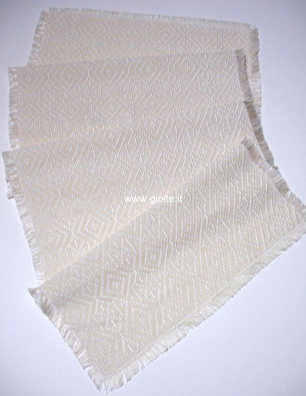 Runnner o guida da tavolo in seta e cotone naturale. Tessuto elegantissimo con effetto lucido che va ad incastrarsi con l'opaco del cotone esaltando al sua eleganza. Rifinito sfrangiato come racchiuso in una cornice. La trama è in seta sintetica e l'ordito in puro cotone naturale, si lava tranquillamente in lavatrice a 50° senza centrifuga. Abbiamo disponibile altre misure, sia guide e centro tavoli, visionare le varie sezioni.