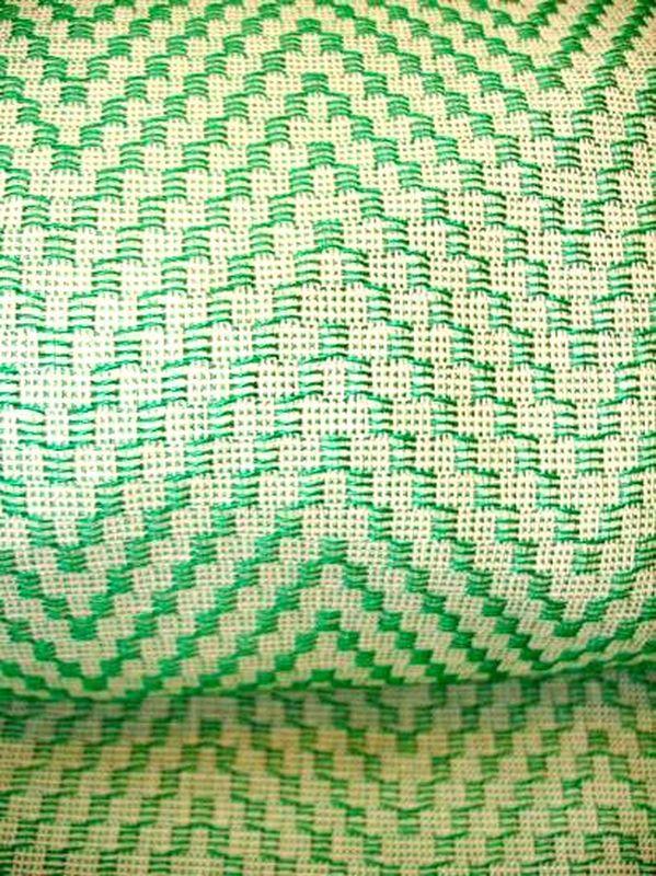 Copriletto matrimoniale in seta viscosa, colore verde chiaro, orlata tessuta a mano artigianato Calabrese con disegno della Magna Grecia spigato tradizione Calabrese per camera da Letto e copri divano