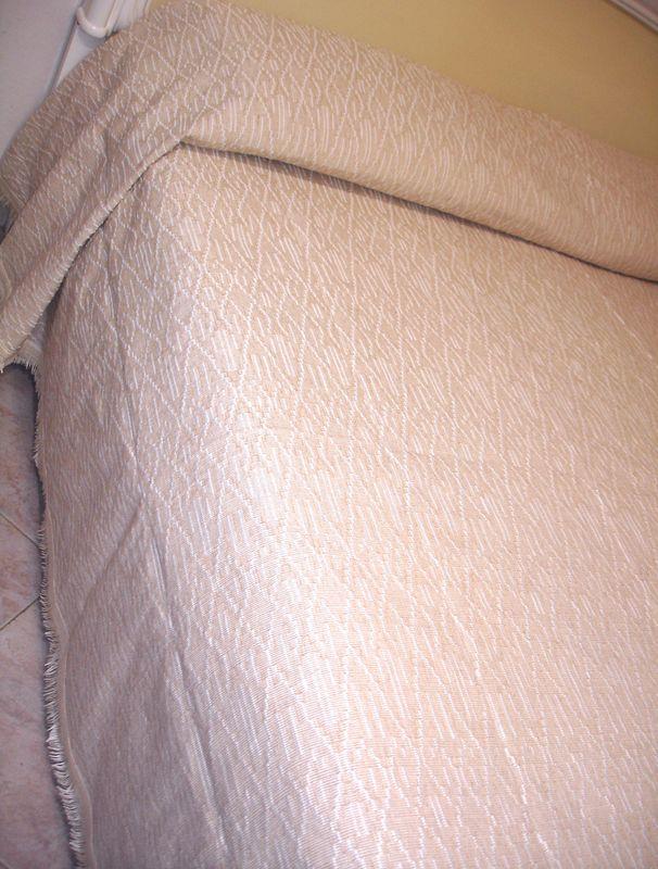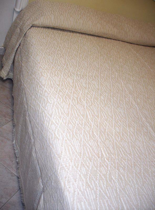 Copriletto matrimoniale in cotone-lino colore avorio con frangia filo perlato disegno della Magna Grecia geometrico misura ampia 270 x 280 artigianato Calabrese Gioite fatto a mano pezzi limitati