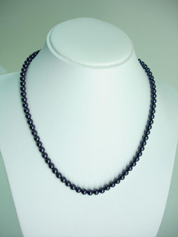 Collana di perle Swarovski Elementis di mm 6, agli estremi per otto cm movimentiamo la collana con perle di mm 4 e chiusura in argento. Lunghezza cm .
