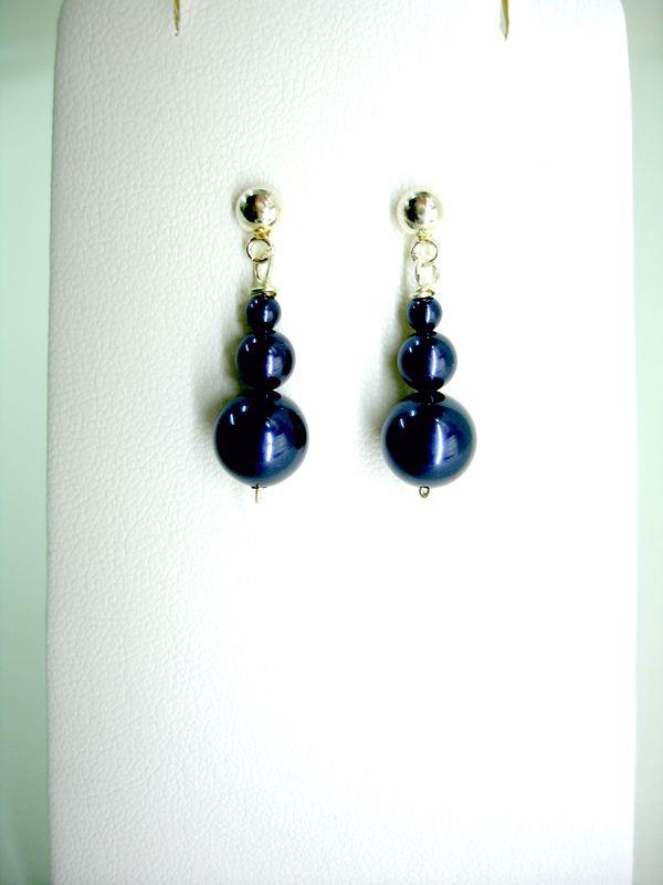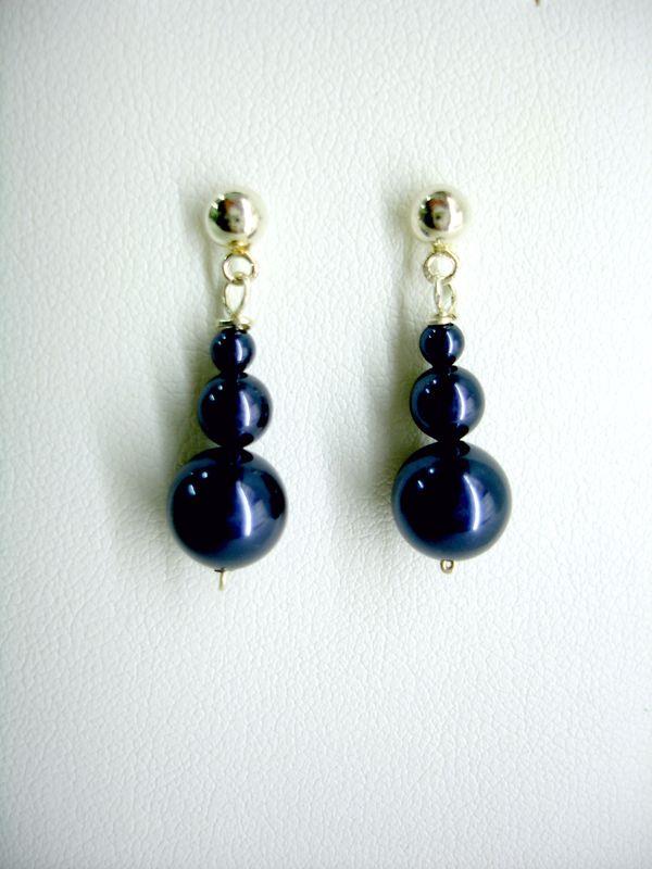 Orecchini pendenti in perle Swarovski Elementis di mm 10, 6 e 4  con filo e monachelle in argento, lunghezza cm.