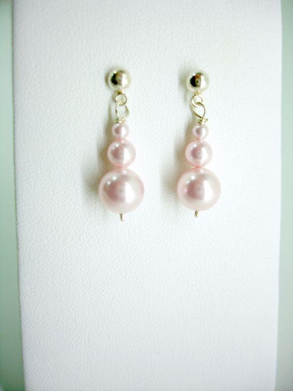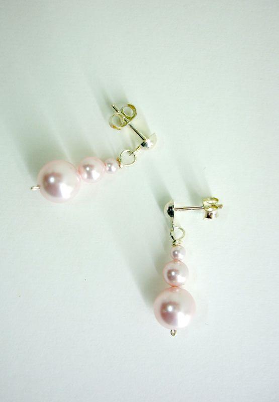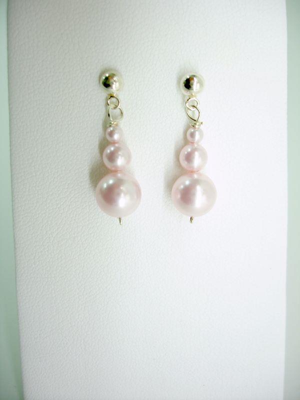 Orecchini pendenti in perle Swarovski Elementis di mm 10, 6 e 4  con filo e monachelle in argento, lunghezza cm.