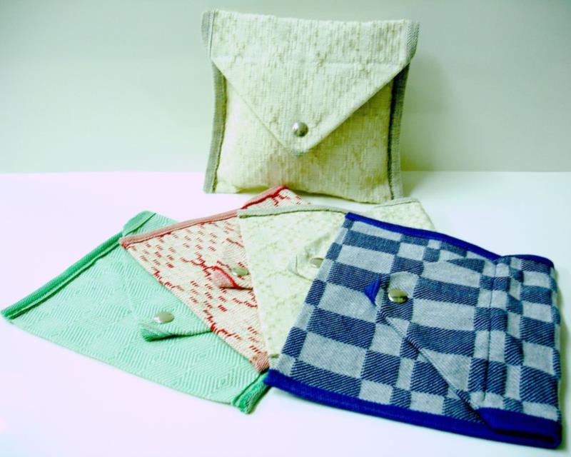Caratteristiche:porta tovagliolo e porta posate con bottone. Tessuto con motivi decorativi tradizionali, della Magna Grecia, realizzato, trama e ordito in cotone naturale. Tessuto molto resistente, misura cm  20 x 18.