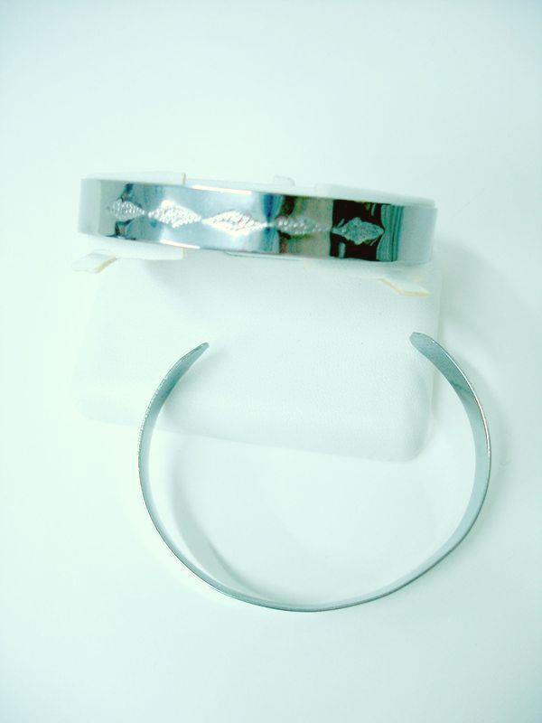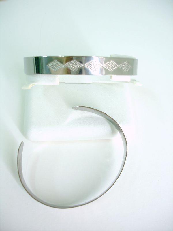 Bracciale in acciaio aisi 316, inossidabile- anallergico, viene martellato eseguendo il motivo decorativo, lucidato a specchio, si allarga o si restringe secondo le proprie esigenze, lungo cm 16,5 x 1