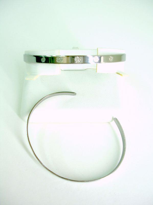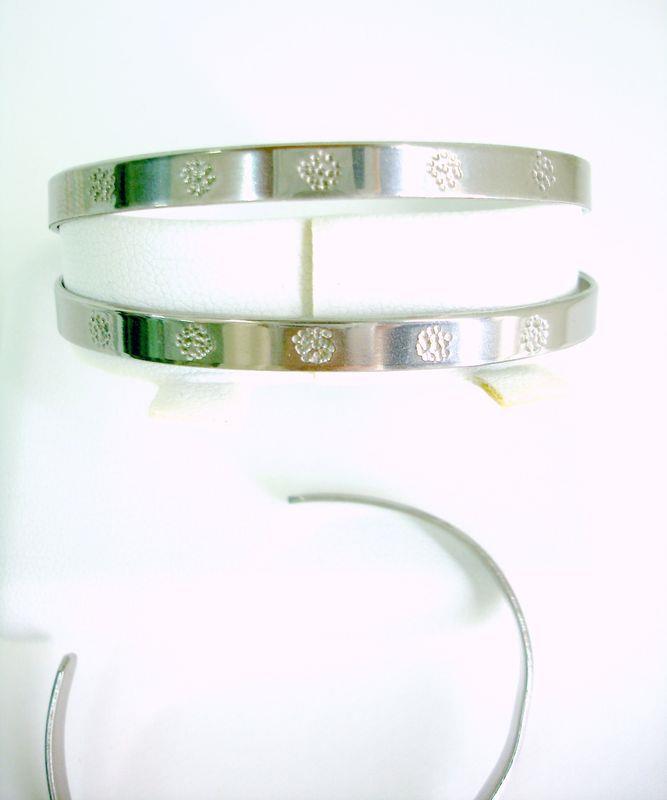 Bracciale in acciaio aisi 316, inossidabile- anallergico, viene martellato eseguendo il motivo decorativo, lucidato a specchio, si allarga o si restringe secondo le proprie esigenze, lungo cm 16 x 0.5