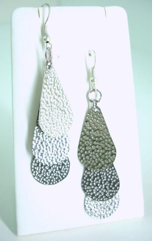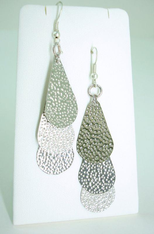 Orecchini solare in acciaio aisi 316 anallergico e inossidabile, viene martellato, tagliato e lucidato a specchio, con motivo decorativo a goccia sovrapposti a scala di tre elementi, il tutto risalente alla Magna Grecia. Monachella e anellini in silver, molto elegante, avvolgente e armoniosi, con il più piccolo movimento si crea un gioco di luce illuminando il viso.