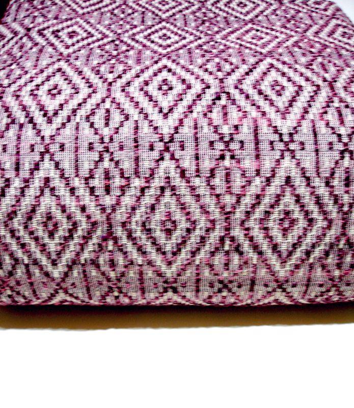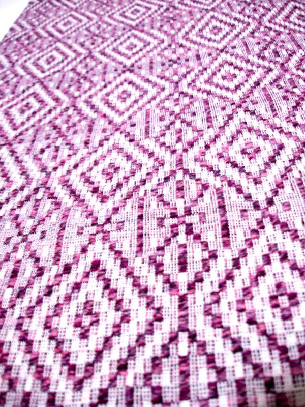 Lavorazione a rombo incastrati, di colore viola, ogni manufatto viene lavorato interamente a mano.