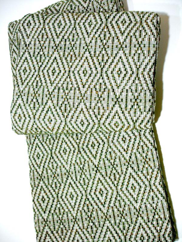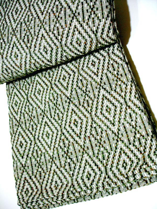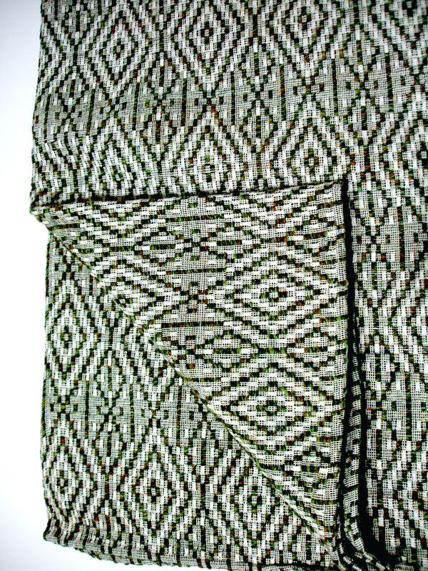 Lavorazione a rombo incastrati, di colore verde marcio, ogni manufatto viene lavorato interamente a mano.