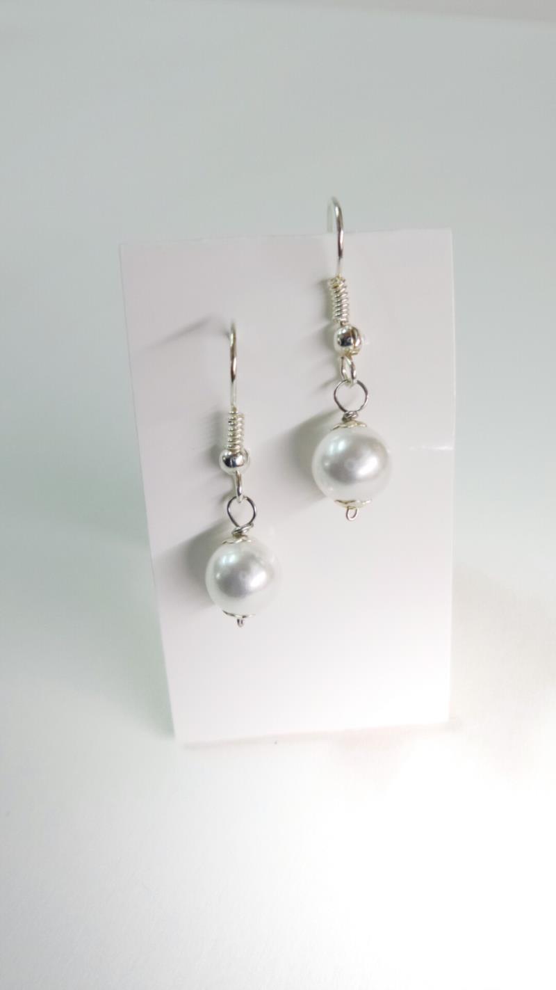 Orecchini Serena con perla e metallo in silver  anallergico e inossidabile. Gli orecchini si presentano pieni di fascino, con gioco di luce morbide.