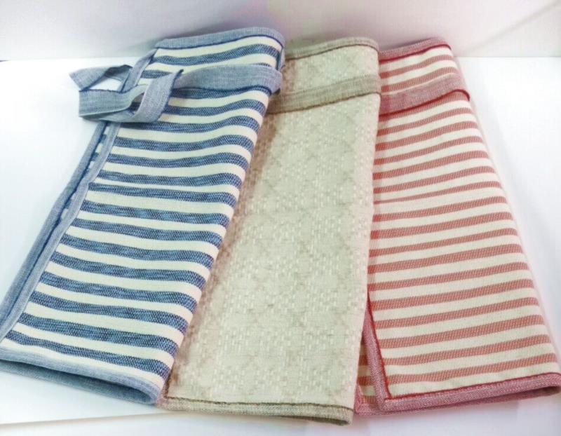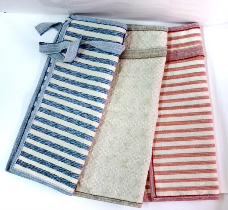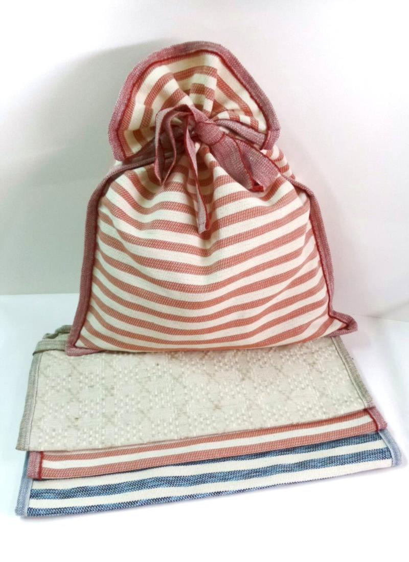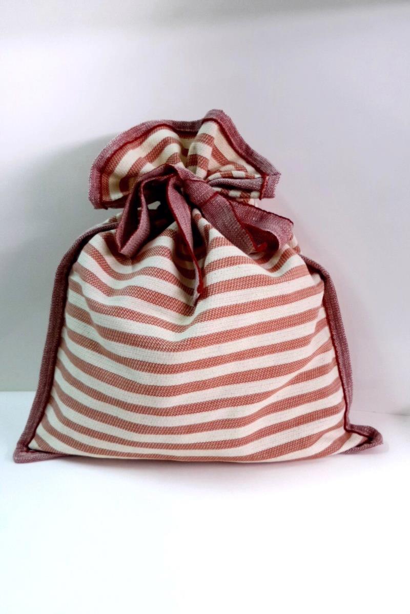 Porta pane in puro cotone  a strisce colorate, bordato con nastro tessuto di mm 19. Viene legato con  fiocco centrale,  mentre dal lato posteriore si puo appendere.
