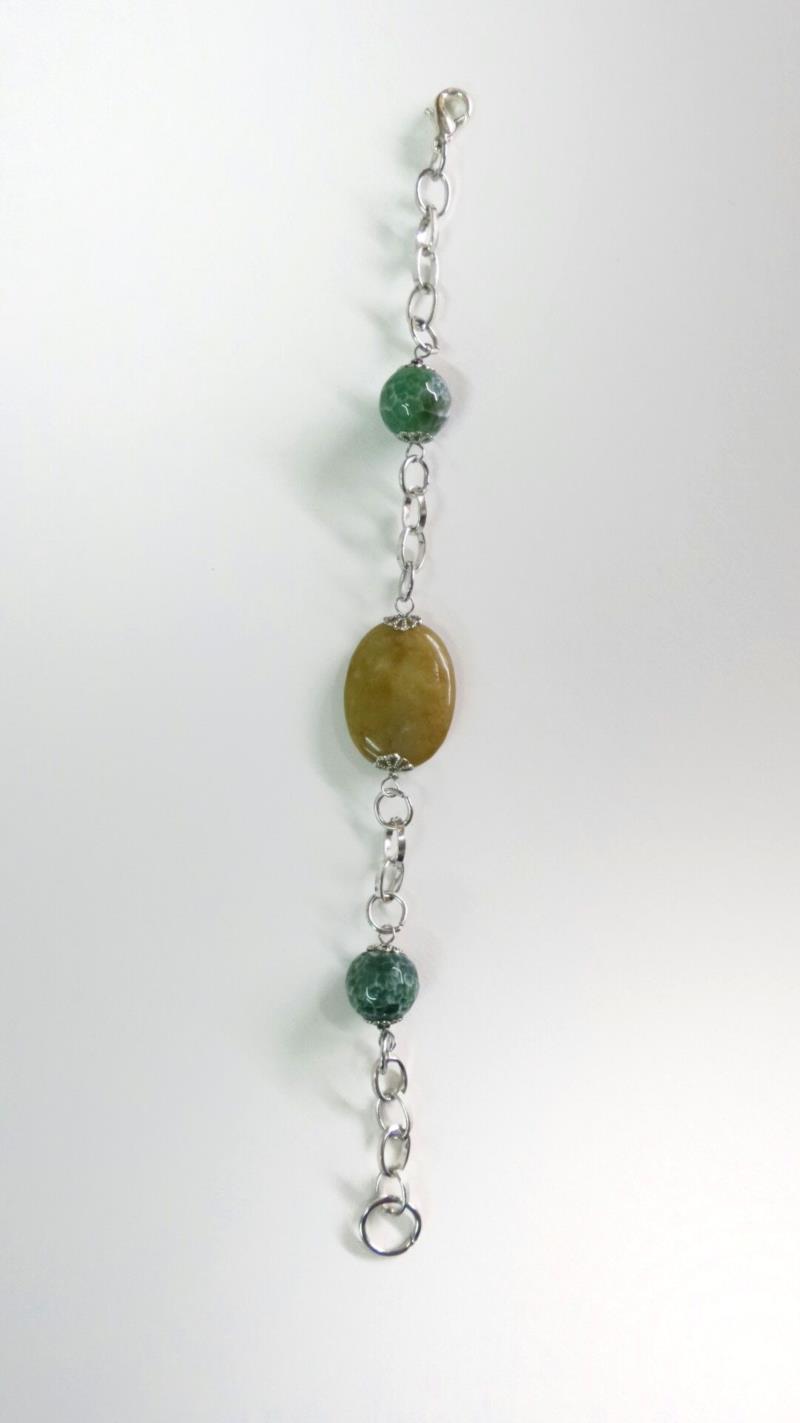 Bracciale agata verde sfaccettata, pietra naturale e metallo inossidabile. Ogni perla è un pezzo unico sia per colore che per forma. Il bracciale si presenta molto elegante ed armonioso, con sfumature ineguagliabile e irripetibili. Si può agganciare anche su maglie interne.