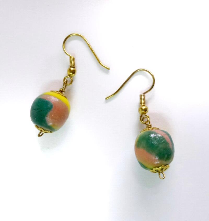 Orecchini morella in porcellana infrangibile. L'impasto della porcellana avviene con l'abbinamento di cinque tonalità di colori, ogni perla è unica a se, irripetibili pezzi unici, sia per forma, in quanto vengono modellati a mano e per colore.