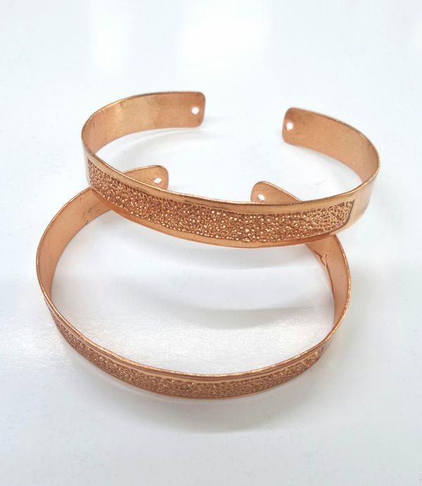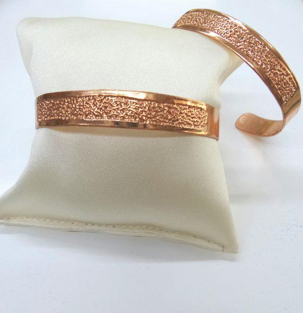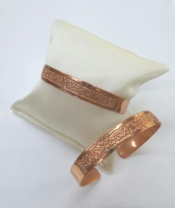 Bracciale in rame, a fascia regolabile. Realizzato a mano anallergico e inossidabile con motivi decorativi a rombetti riportati sulla fascia centrale. le misure sono: diametro cm 18 altezza della fascia di rame cm 1, spessore del rame 0,01. Misura grande per uomo, a contatto con la pelle scarica la tensione del corpo e alleggeriscono i dolori, pezzi unici manufatti realizzati da Gioite.