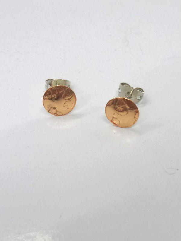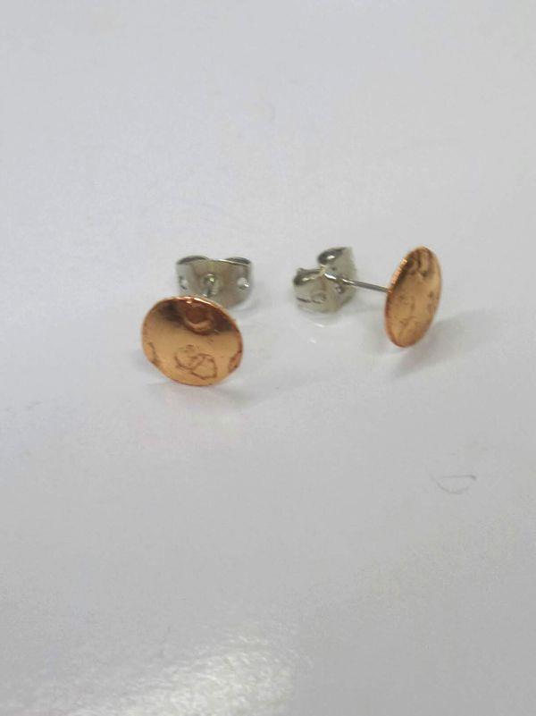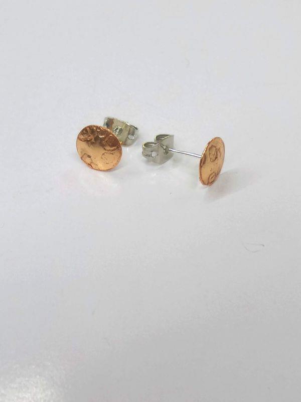 Orecchini a bottone in rame tondi, martellato anallergico e inossidabile. € 10,00