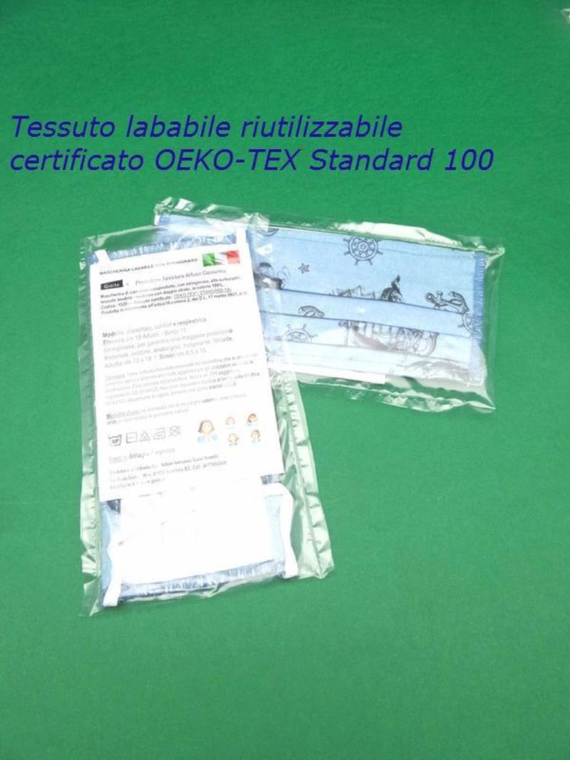 MASCHERINA LAVABILE FILTRANTE PROTETTIVA ANTI APPANNAMENTO IN COTONE CERTIFICATO Tessuto certificato: OEKO-TEX® STANDARD 100 alta sartorialità