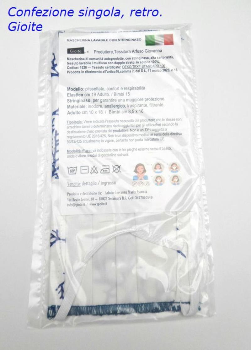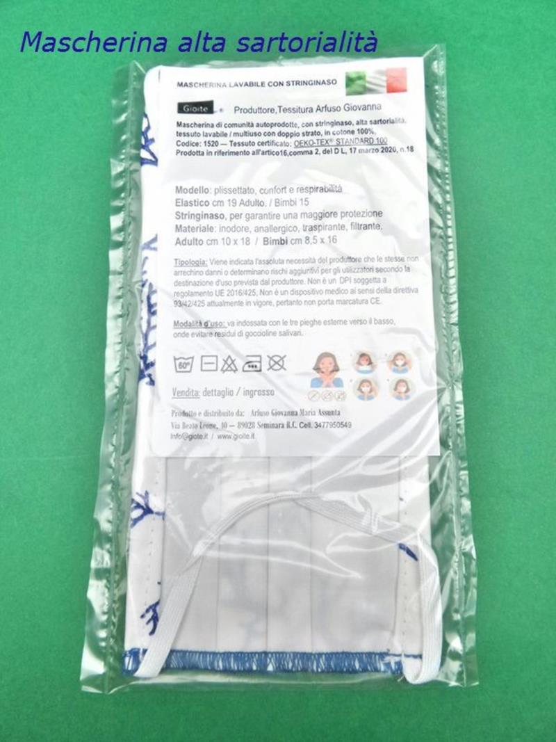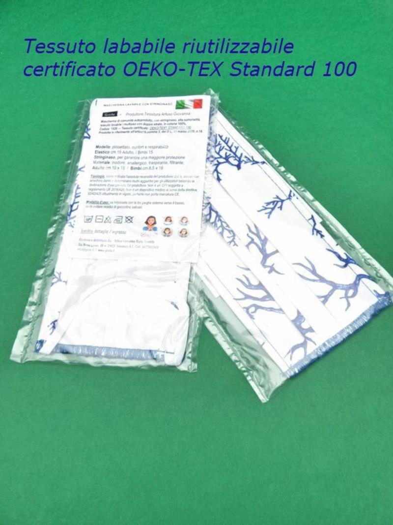 MASCHERINA LAVABILE FILTRANTE RIUTILIZZABILE IN COTONE DOPPIO STRATO, Tessuto certificato: OEKO-TEX® STANDARD 100 alta sartorialità € 3,50