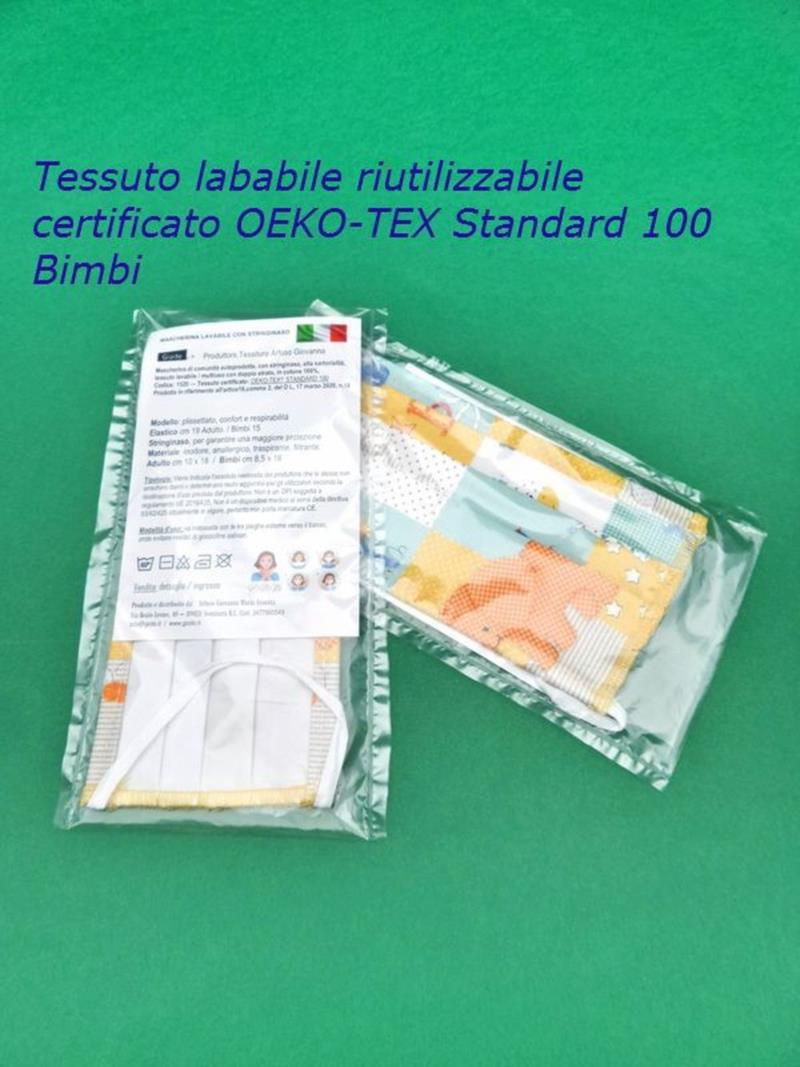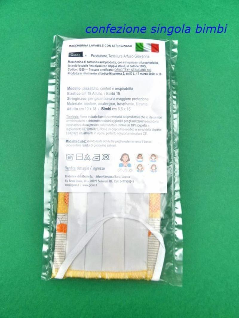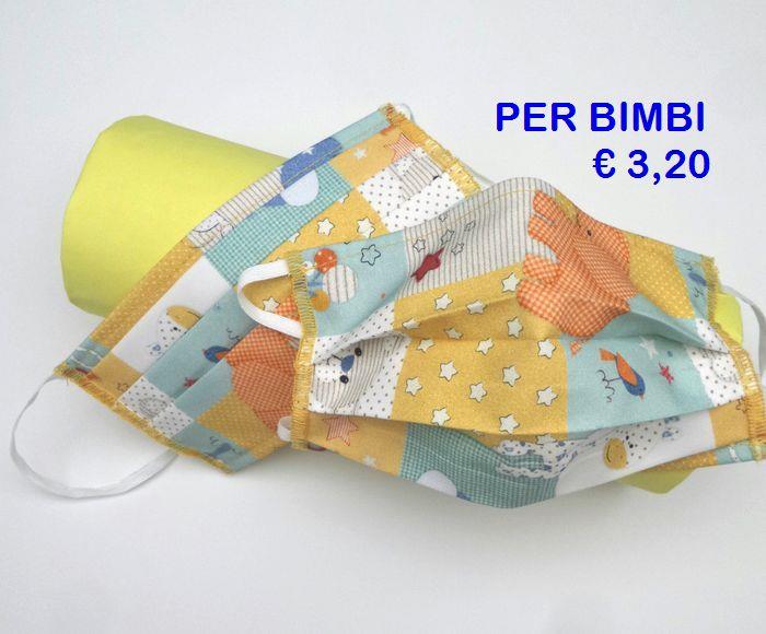 MASCHERINA PER BIMBI LAVABILE DOPPIO STRATO IN COTONE ANTI APPANNAMENTO COMODA E FILTRANTE, Tessuto certificato: OEKO-TEX® STANDARD 100 alta sartorialità € 3,20